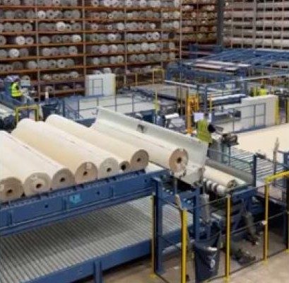 In the near future, this line will deliver perfectly finished, paper-wrapped vinyl rolls, ready for shipment to our customer customers.