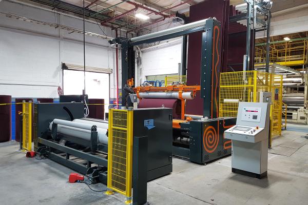 The wrapping winder is equipped with load cells to measure the weight of the total roll.